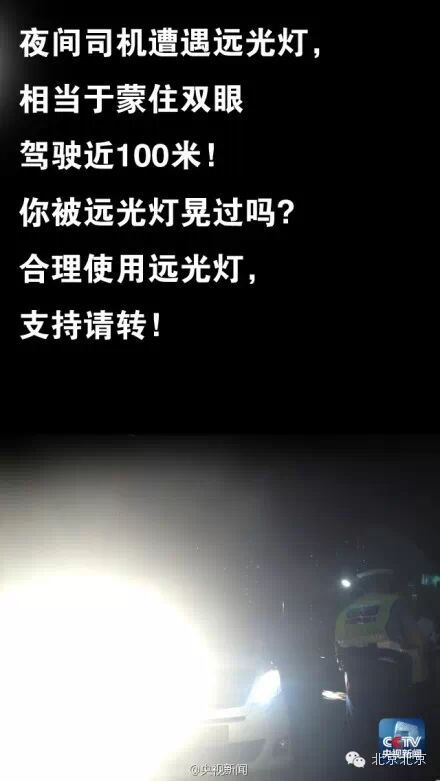 最近看到一段短文,我觉得不管怎么样我一定要分享出去,让更多人知道。因为现在的小车到处都是,而很多私家车主们开车都特别喜欢打远光灯。这个举动往往都是利己损人的。随意开远光灯,一不利于行车安全,二对对向的行人和车辆也是很危险的...有时候对面行来一辆远光灯的车真的都睁不开眼了!